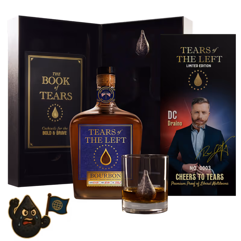 Limited Edition Box Contains: - 1 Bottle of Tears of the Left Kentucky Bourbon - 1 Book of Tears - Cocktails for the Bold & Brave - 1 GLOBALIST Tear Stone (Chilling Whiskey Stone) - 1 x Legend Collector's Card — For Draining the Swamp